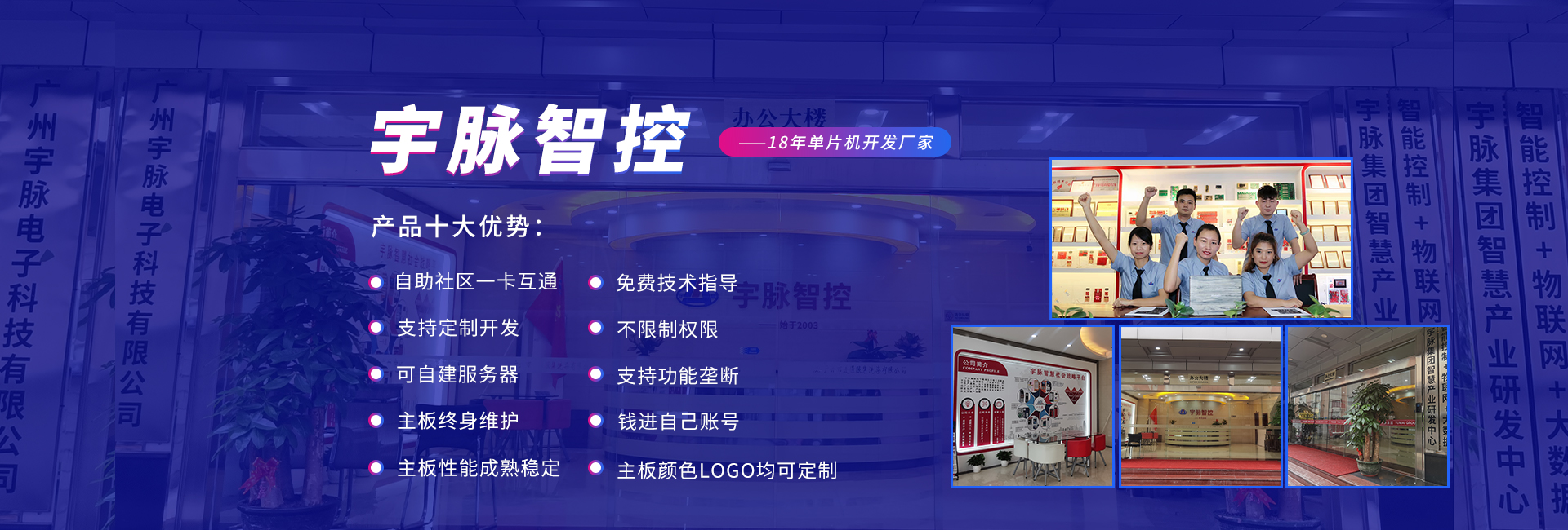 公司前身是2003年成立的宇脉电子石牌经营部,在广州新赛格电子城拥有两个实体店,专注于单片机开发、电子产品定制开发。2014年正式更名为爱体育官方网站-爱体育(中国) ,专注打造无人值守自助设备控制系统及后台管理系统方案定制的国家高新技术企业。并成为集研发、生产、销售和服务于一体的领军企业。